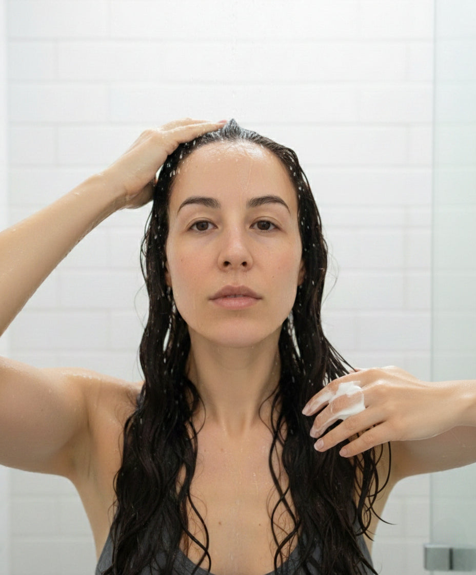 Lava tu cabello y retira el exceso de agua. Para mejores resultados, aplica la crema sobre el cabello húmedo, limpio y listo para absorber la hidratación y definición.